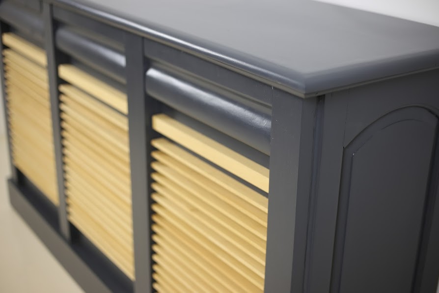 Este aparador nace de un encargo donde la búsqueda de un mueble funcional debía ir parejo a la elegancia en el diseño y la calidad en los materiales empleados. Con este objetivo reciclamos un mueble desgastado de caoba cambiando los elementos que se habían quedado desfasados por una palillería que transmite elegancia y modernidad.